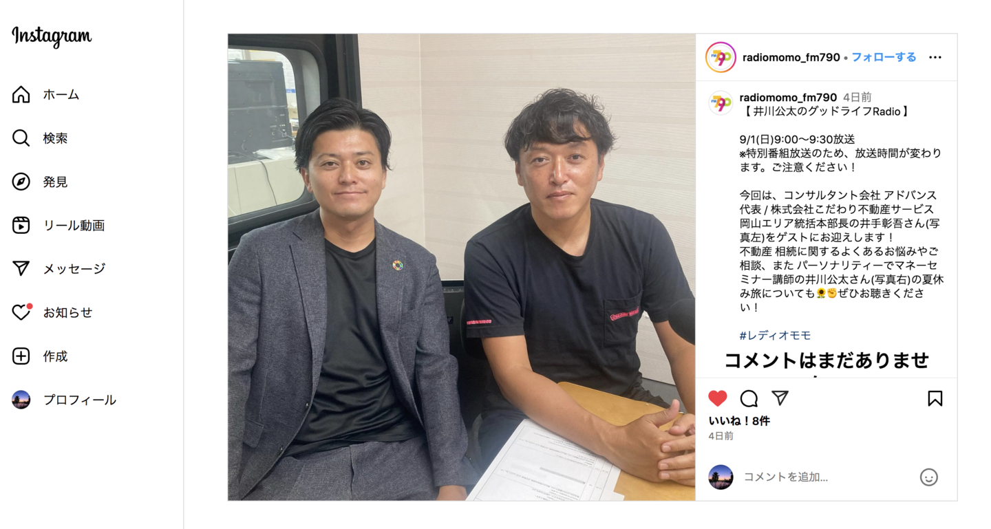 去る2024年9月1日、私が大変懇意にしている井川公太さんがパーソナリティを務めるラジオ番組【井川公太のグッドライフRadio/レディオモモ】に出演させていただきました。