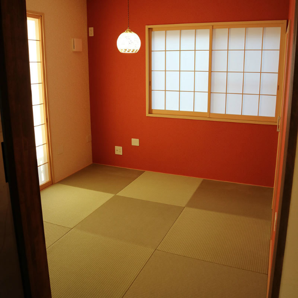 ブロンズガラス越しの和室の壁色が洒落た飲食店のようなアクセントに。