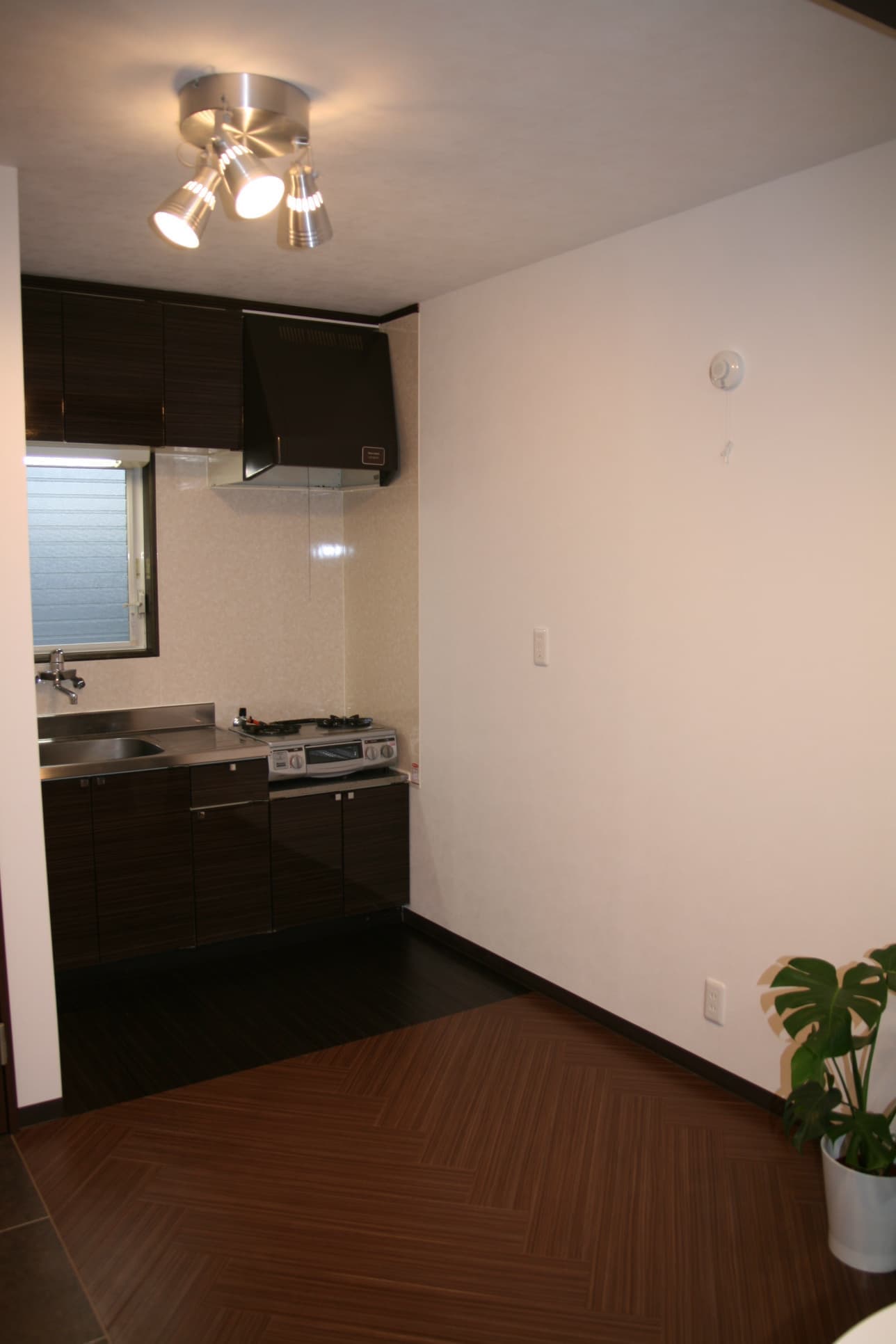 2DKを1LDKに。ダークな色合いでシックな落ち着いた部屋に。(賃貸アパート)