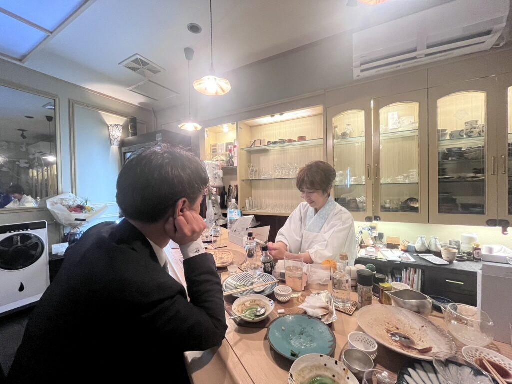 彼女は泉町でちょっと落ち着いた人気の日本酒バーを経営しています。