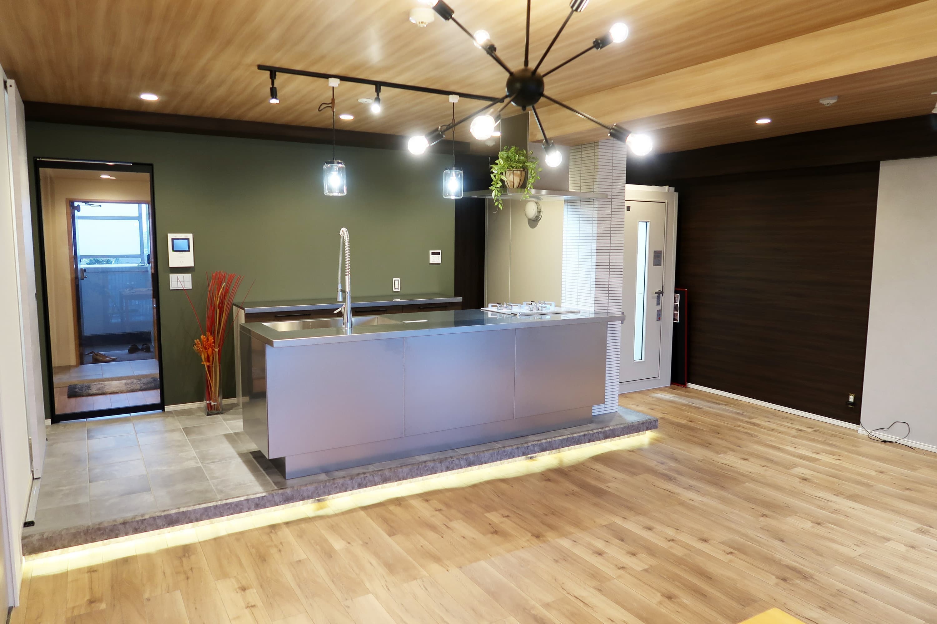 洋室、和室、リビング一体化、キッチン移設、床上げステージ仕様、WIC
