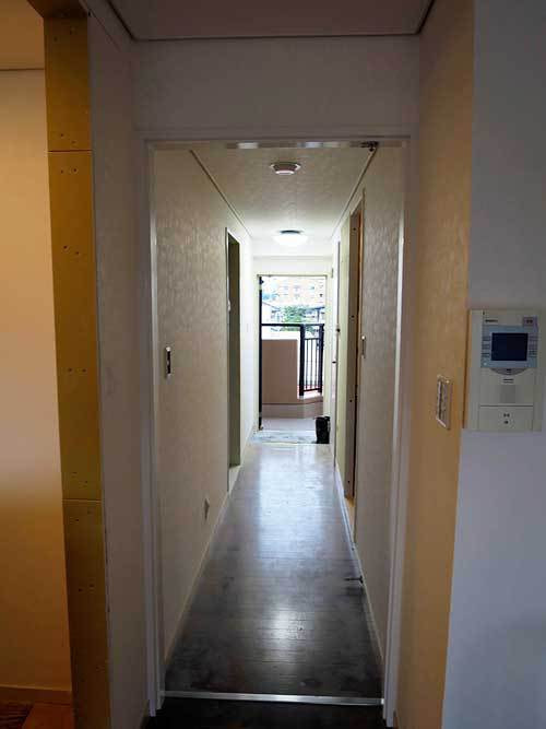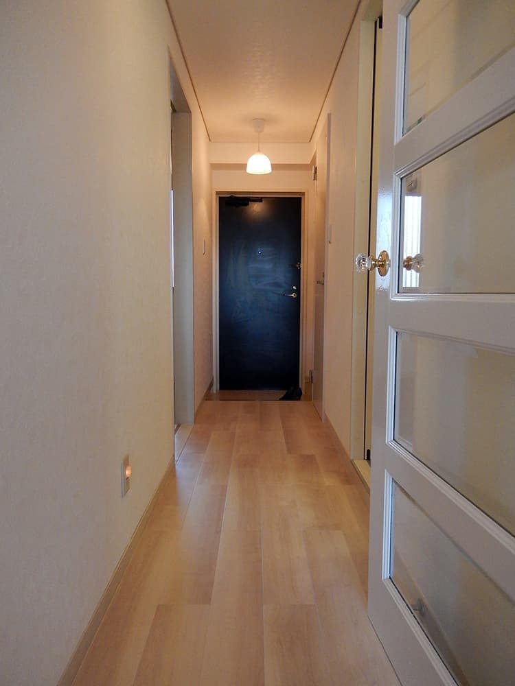 なんとなく古くて暗い廊下も明るくなりました。床の張り替えでかなり雰囲気が変わるものです。