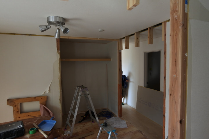 | 大工工事: | 1F和室撤去開口リビング一体化、キッチン袖壁撤去、押入れ利用のWIC新設 |