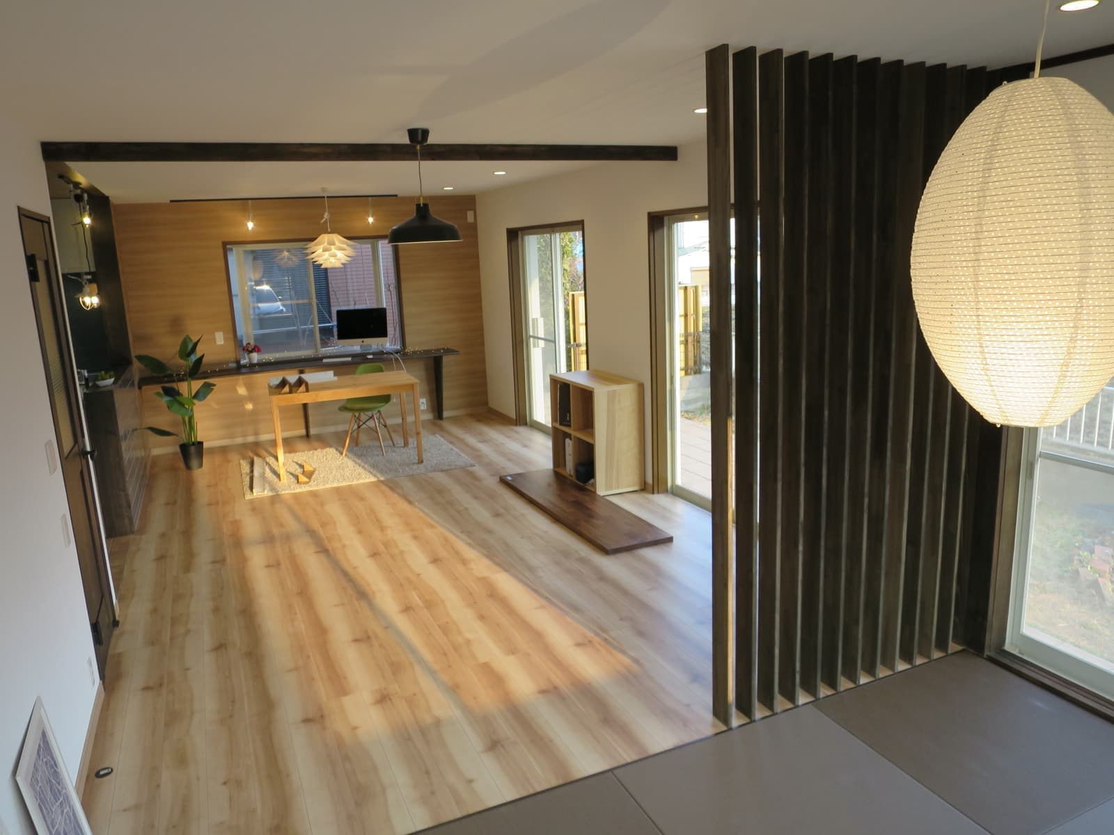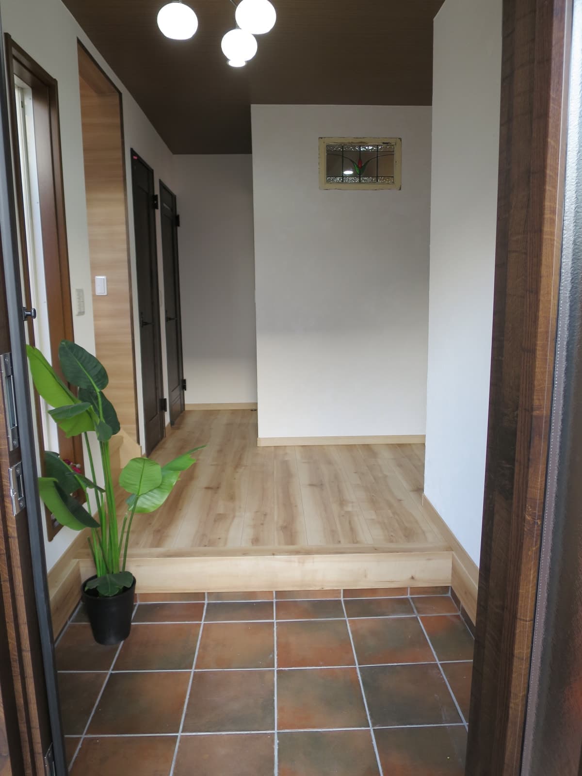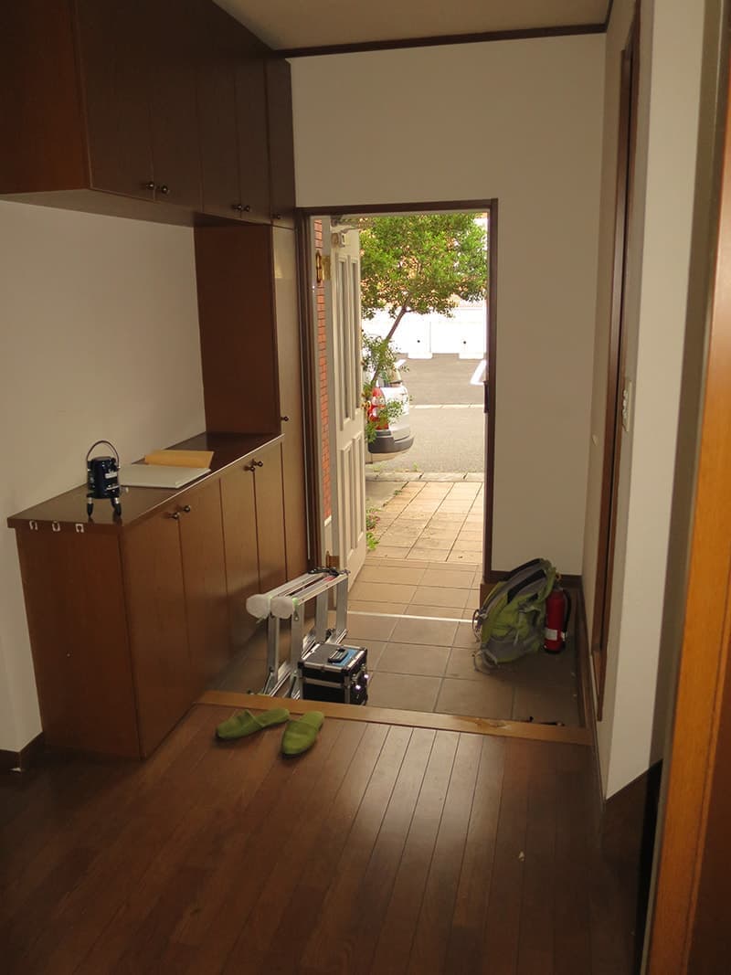 和室を開口してリビングを広く、玄関の収納と和室押し入れを撤去して、広々とした玄関に様変わり。キッチンは吊り戸棚を無くして開放感のあるモダンなスタイルに。