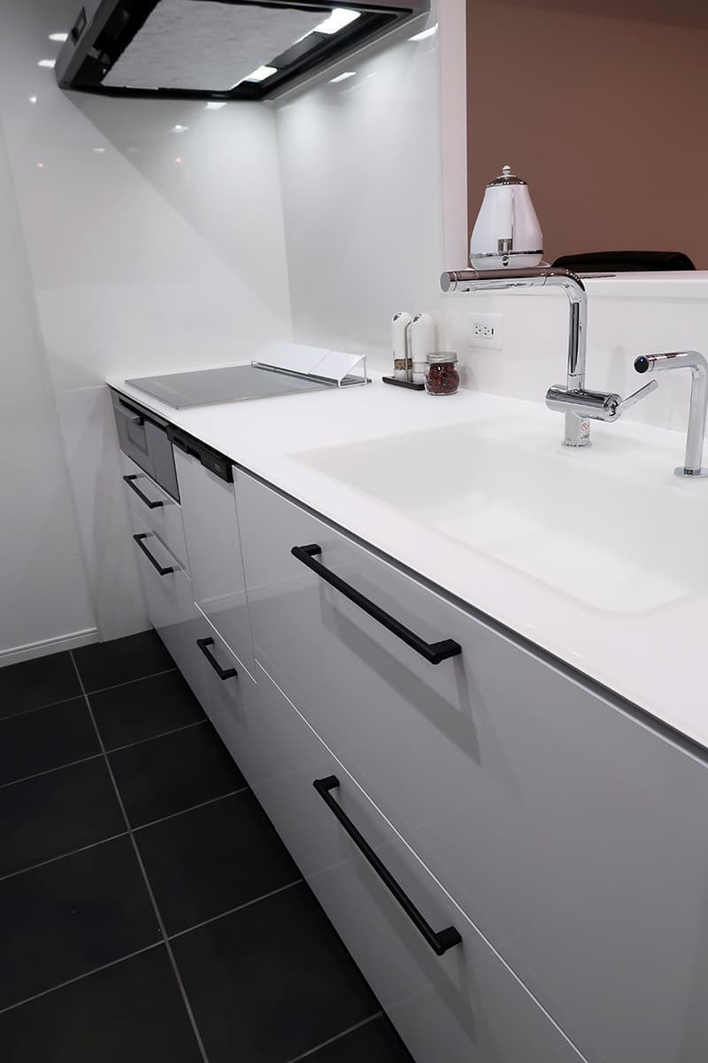 真っ白なお部屋にさらに白くって。きっとお料理する女性はレフ板効果できっと女優気分になれますよ。