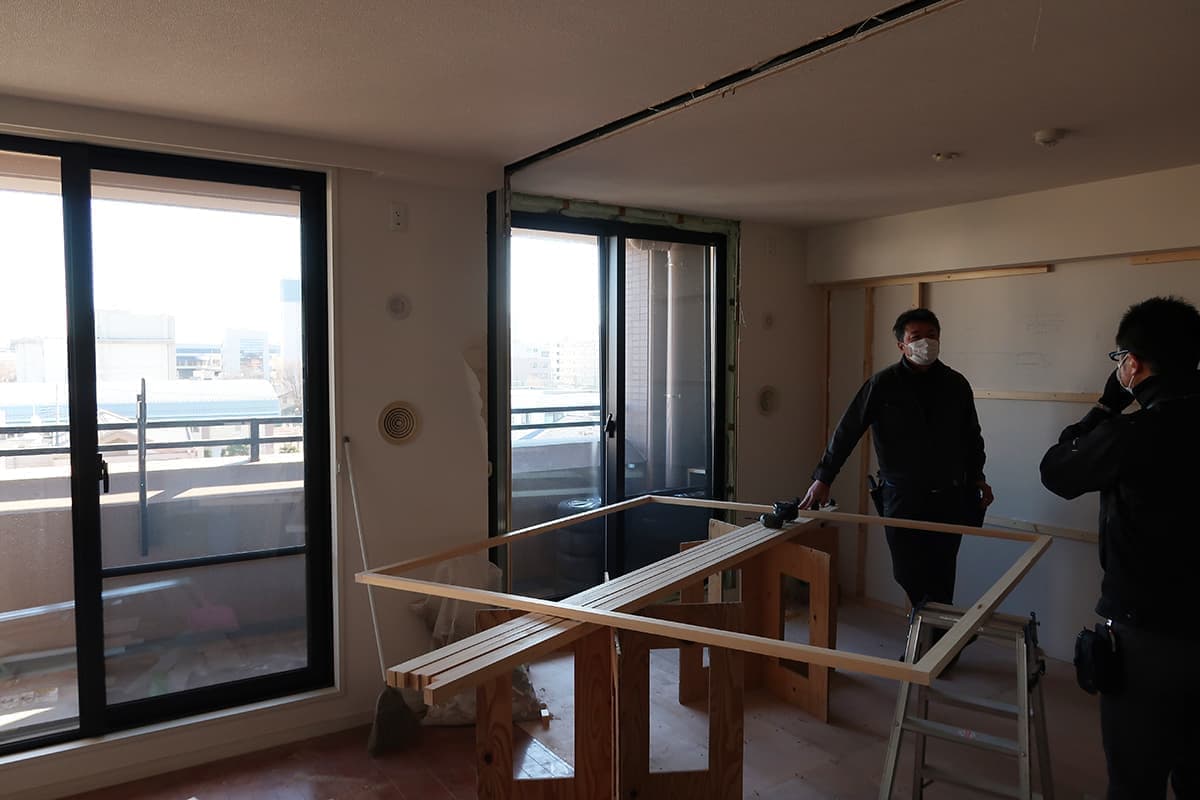 天井高まで開口、キッチンの袖壁と吊り収納も撤去。